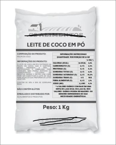 Você pode tirar suas próprias conclusões facinho entrando no Mercado Livre. Busque a palavra leite de coco em pó puro, vais achar anúncios com essas fotos de algumas distribuidoras: